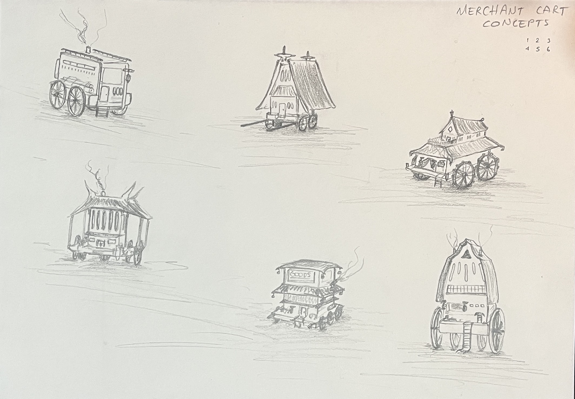 you can see initial sketches of these models as well as a concept alternatives of what the cart would look like from outside.